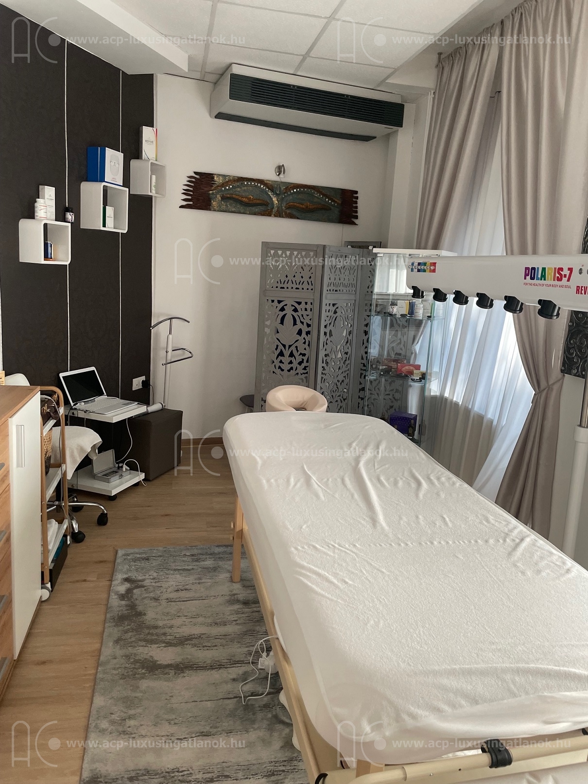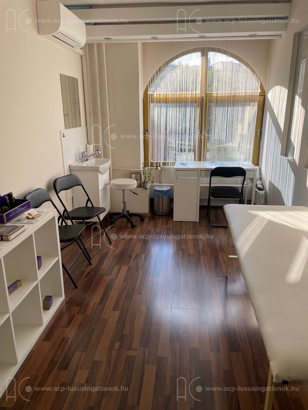 Utcafront - Recepció, váró, 6-7 rendelő, konyha és WC-mosdó kialakítású. Részben bútorozott, igény esetén akár berendezéssel együtt tudjuk biztosítani a területet.