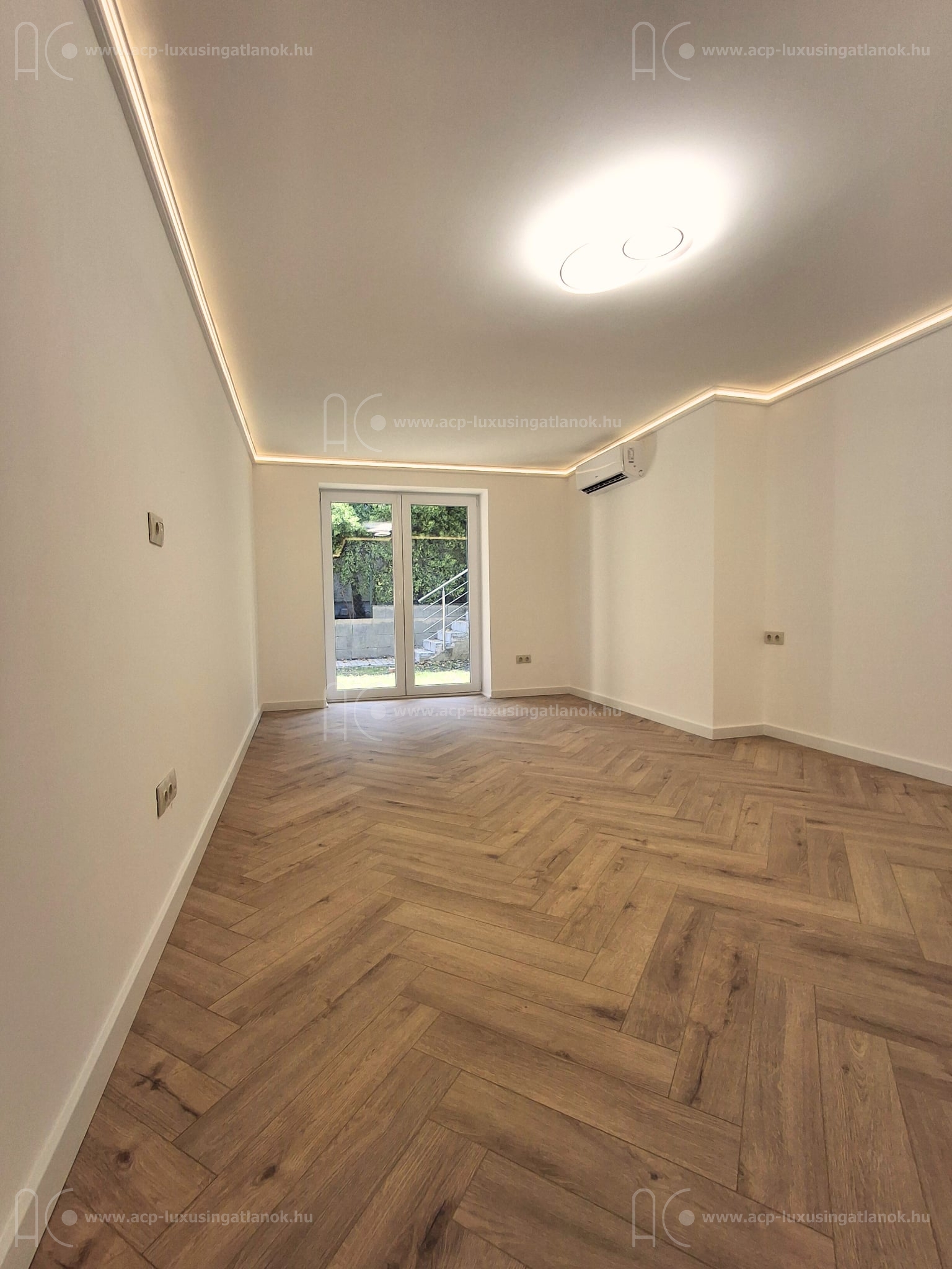 Frissen felújított, hőszivattyús 121 nm-es 3 szobás lakás + 30 nm terasz és privát 417 nm kert kapcsolattal eladó. A nappaliból közvetlen kilépve megközelíthető a kert, ahol akár medence is elhelyezhető.